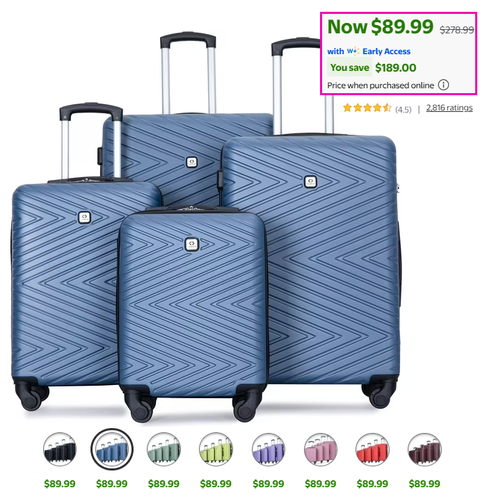 WHAT?! This is a CRAZY offer for luggage! It comes in a bunch of colors and gets good reviews! I bought this set in October and it’s been working out great!