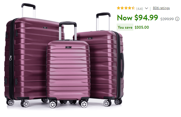 Tripcomp Hardside Luggage Set, 3 Pieces with Spinner Wheels for $94.99 (Reg $399.99)!