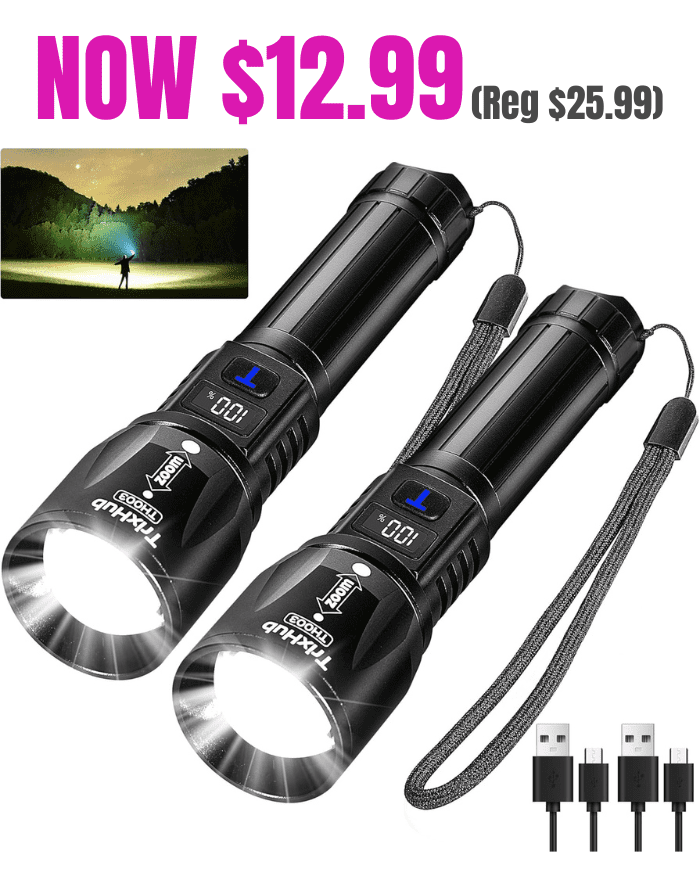 TrixHub Rechargeable Flashlights 2 Pack, 9000LM for $12.99 (Reg $25.99)!