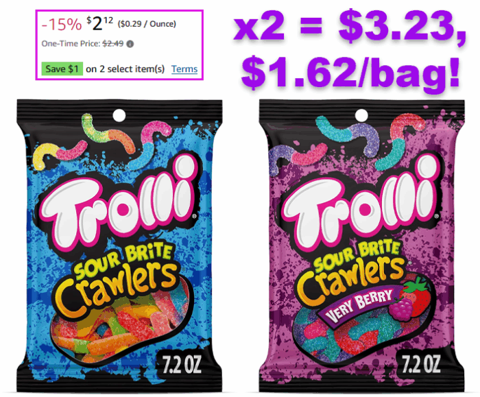 Trolli Sour Brite Crawlers, Candy, Very Berry, Sweet and Sour, Gummy Worms, 7.2 oz for $2.49