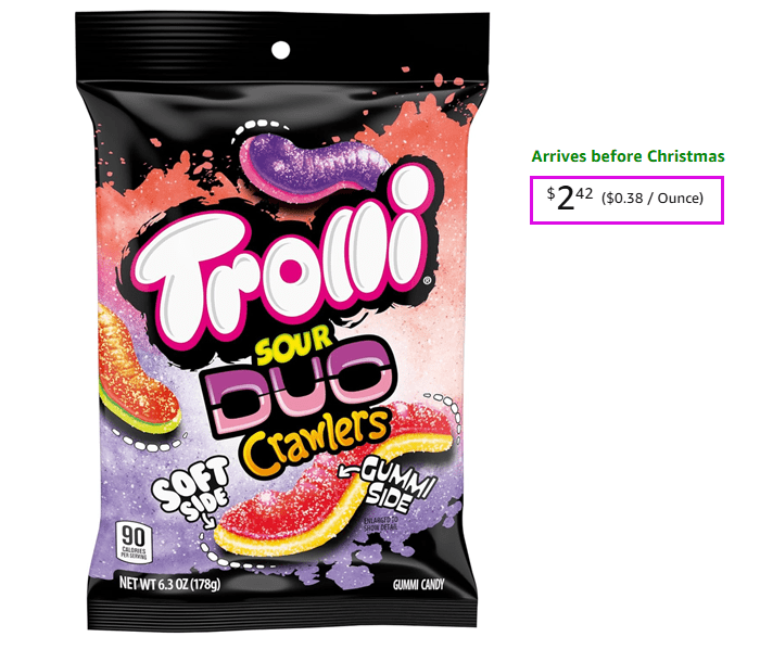 Trolli Sour Brite Duo Crawlers Candy, 6.3 Ounce Bag for $$2.42 (Reg $3.49)! *Order this way if you want to make sure you get them in time for Christmas.