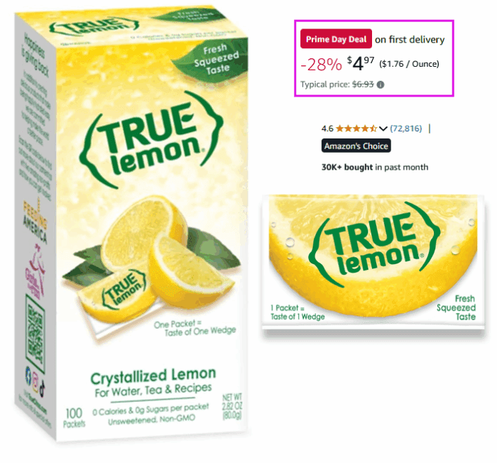 TRUE LEMON Water Enhancer, Bulk Dispenser, 100 Count for $4.97 (Reg $6.93)!