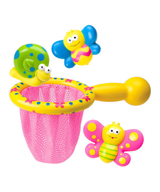 Bitty bathers swoop and catch floating, water-squirting bug pieces using a chunky floral net. Designed to encourage early skills development, it’s an action-packed aquatic adventure with every dip.