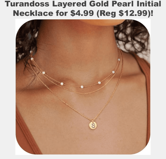 Turandoss Layered Gold Pearl Initial Necklace for $12.99