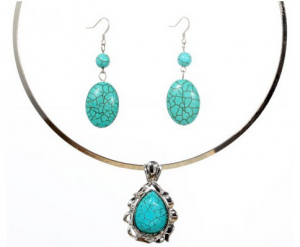 Turquoise Teardrop Pendant Necklace With Matching Earrings Set for only $4.85 (Reg. $19.42)