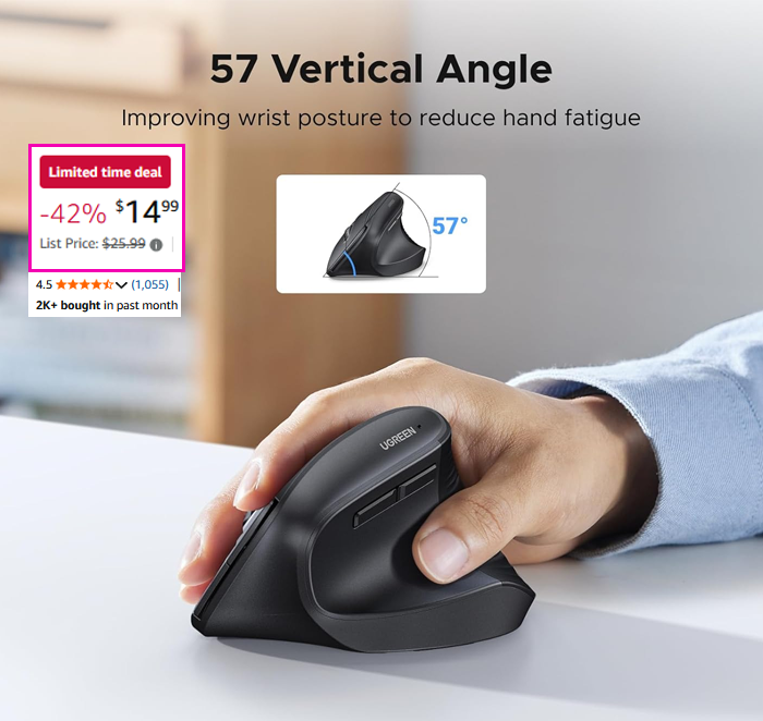 UGREEN Wireless Bluetooth Ergonomic Vertical Mouse for $14.99 (Reg $25.99)!