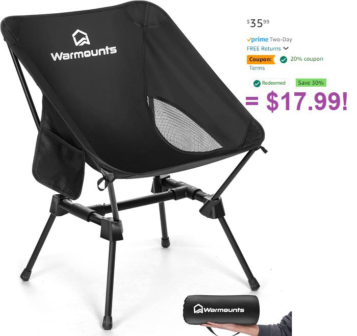 WARMOUNTS Ultralight Camping Chair for $35.99