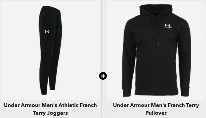 Under Armour Men’s French Terry Pullover + Under Armour Men’s Athletic French Terry Joggers for $57.98 (Reg $95)