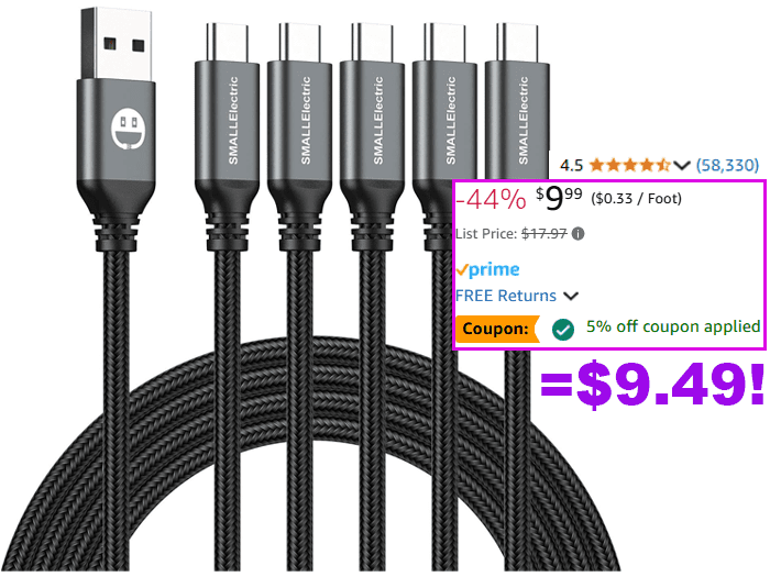 I got these cables when I shared this deal a few months ago, and they’ve been fantastic! This works out to be just $1.90 per cable!