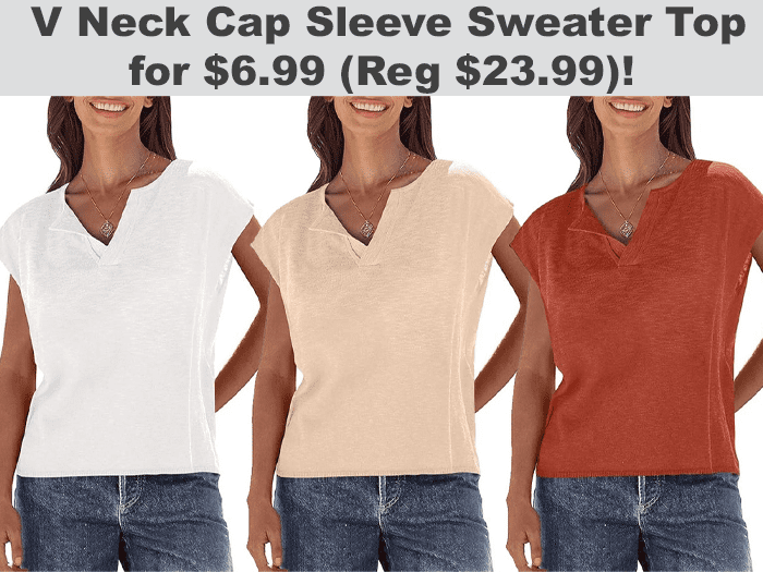 V Neck Cap Sleeve Sweater Top for $8.99 (Reg $14.99)!