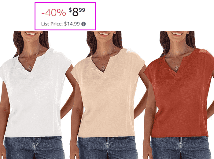 The hemline and neckline of this top are both very cute. It comes in 7 great colors.