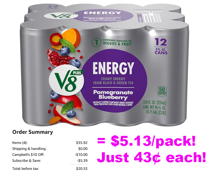 V8 +Energy Pomegranate Blueberry Juice Energy Drink, 8 fl oz Can (12 Pack) for $8.98