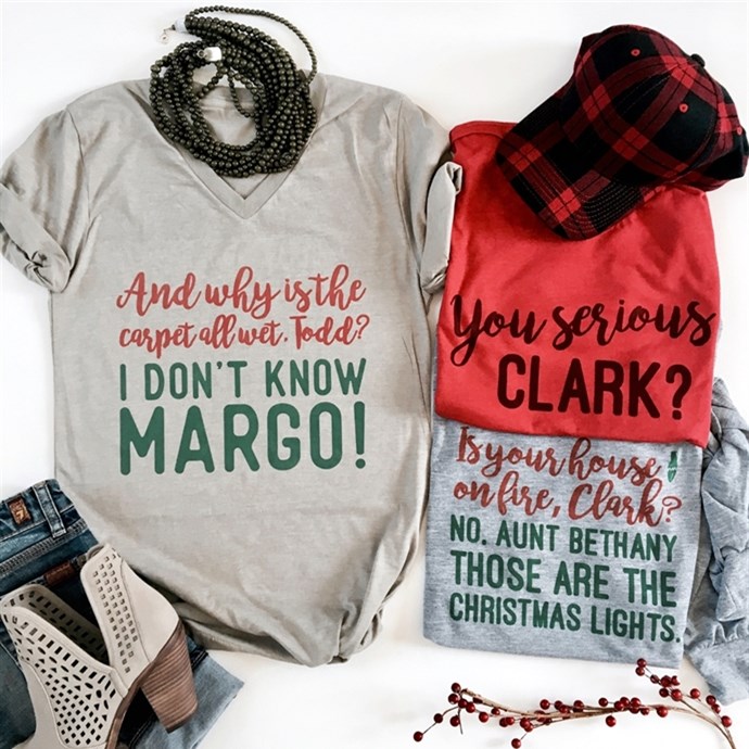 Blast from the past quotes for a fun holiday tee! Available in short sleeve, long sleeve & ladies fit tees. It’s never too early to get your Christmas shirt!
