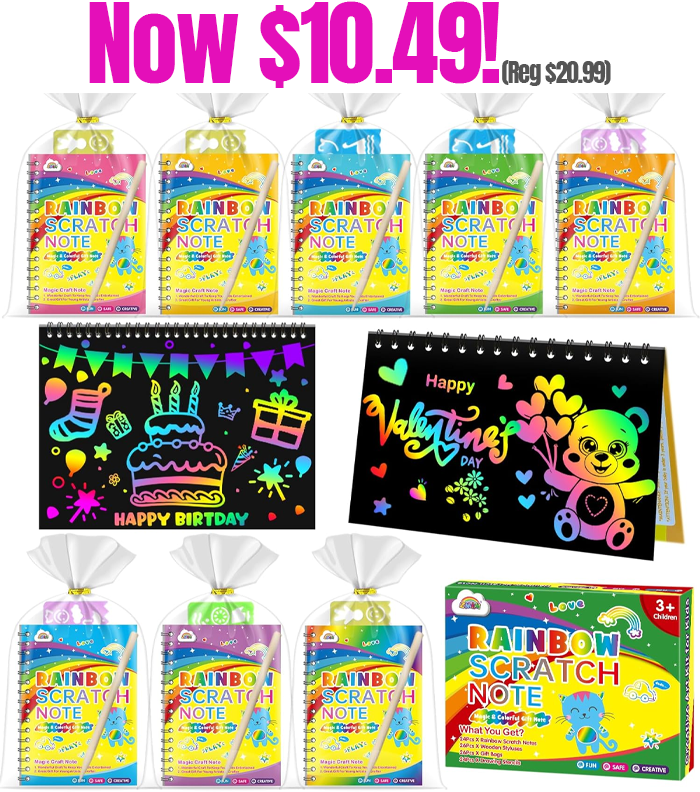Valentine’s Day Classroom Gift Sets: 16 Pack Scratch Rainbow Art Notebook Paper for $20.99