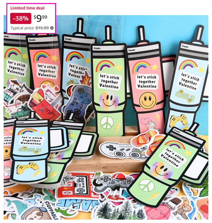 Valentine’s Day Water Bottle Cards & Stickers, Set of 48 for $9.99 (Reg $15.99)!