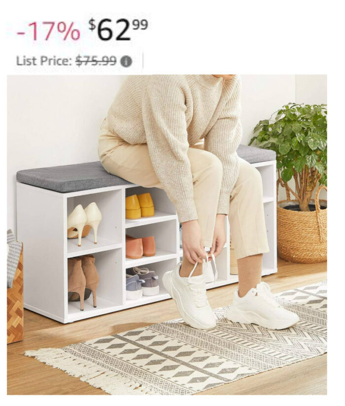 VASAGLE CUSTOS Collection Storage Shoe Bench $62.99 (reg $75.99)