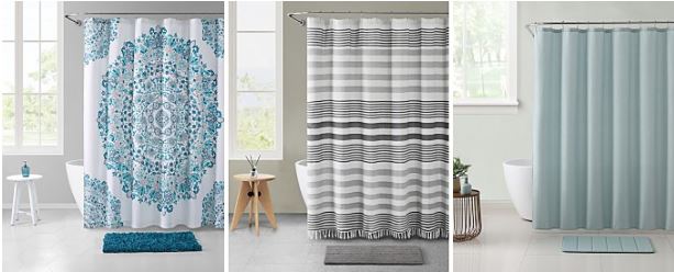 - Set includes one shower curtain, 12 shower curtain hooks, and one memory foam bath rug