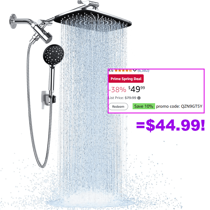 Veken Wide Rain Shower Head with 6 Modes + Handheld Water Spray for $49.99 (Reg $79.99)