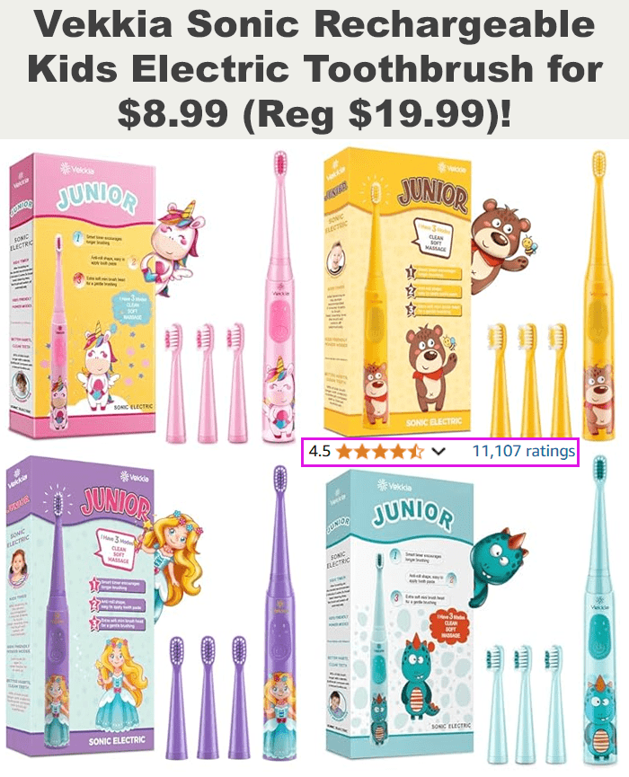 Vekkia Sonic Rechargeable Kids Electric Toothbrush for $17.99 (Reg $19.99)