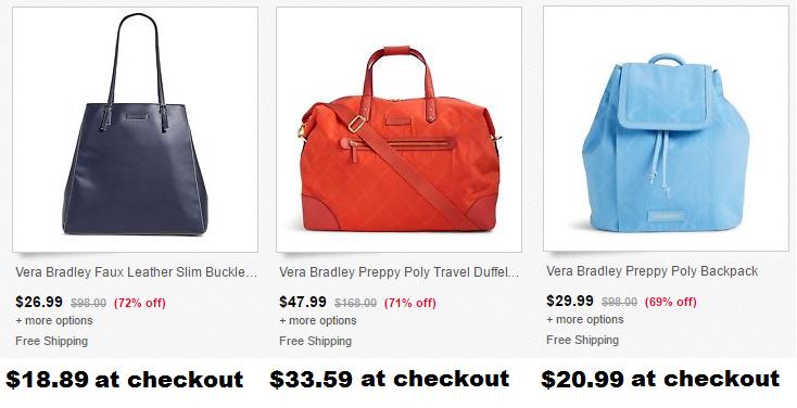 The Vera Bradley store on eBay is having a huge sale, plus when you check out you’ll automatically get another 30% off the listed price! Shipping is also free!