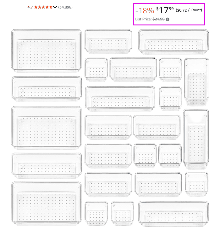 Vtopmart 25 PCS Clear Plastic Drawer Organizers Set for $17.99 (Reg $21.99)!