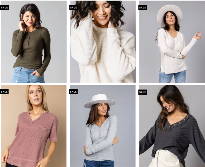 Waffle Knit Tops for $11.24- $28.74 (Reg $22.99 – $39.99)!