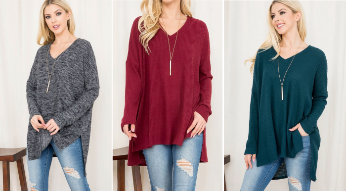 Waffle V-Neck Hi-Low Hem Sweater for $14.99 Shipped (Reg $39.99)!
