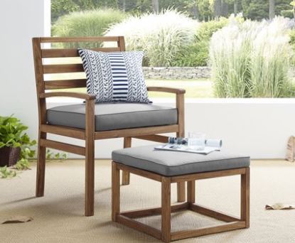 Manor Park Acacia Wood Outdoor Patio Chair & Pull Out Ottoman – Brown/Grey $129.97 (reg $289.00)