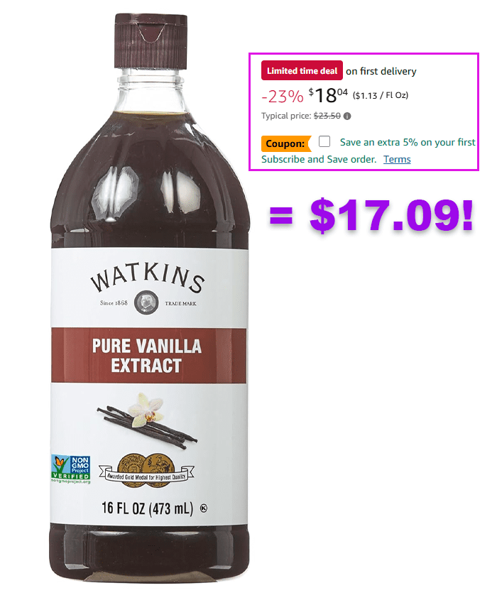 Watkins Pure Vanilla Extract, 16 Ounce from $18.99 (Reg $23.50)!