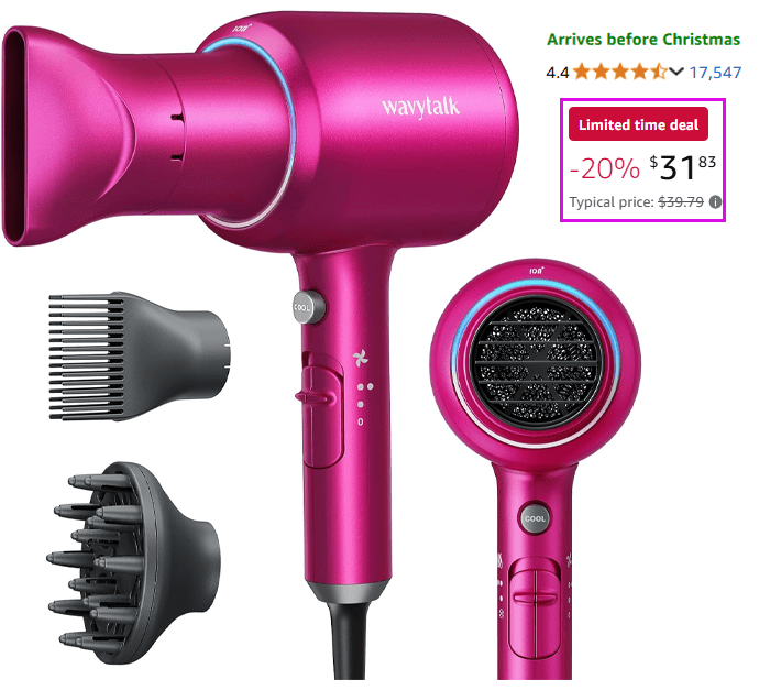 Wavytalk Ionic Hair Dryer Blow Dryer with Diffuser & Comb for $31.83 (Reg $39.79)!