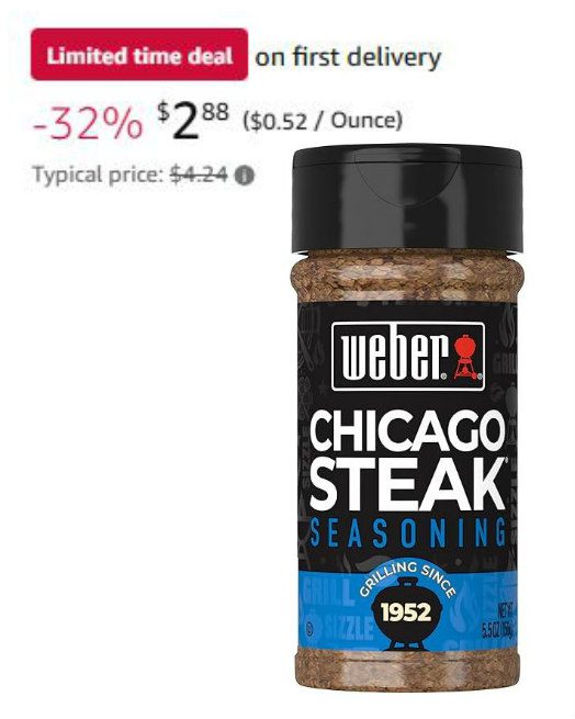 Weber Chicago Steak Seasoning, 5.5 Ounce Shaker $3.39 (reg $4.24)