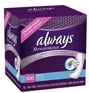 - Always Daily Liners Unscented 100 Count – $4.68 to $3.54 shipped