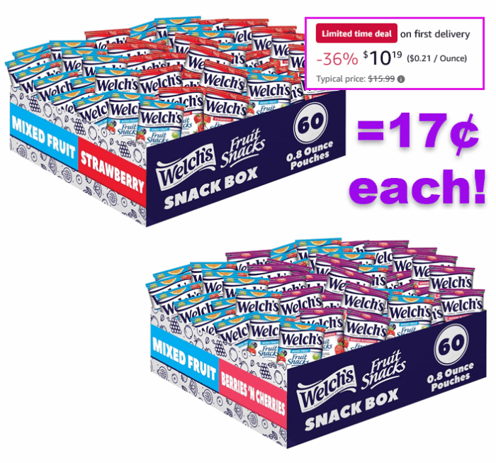 Welch’s Fruit Snacks, 0.8oz, Gluten Free, (Pack of 60) for $11.99 (Reg $15.99)