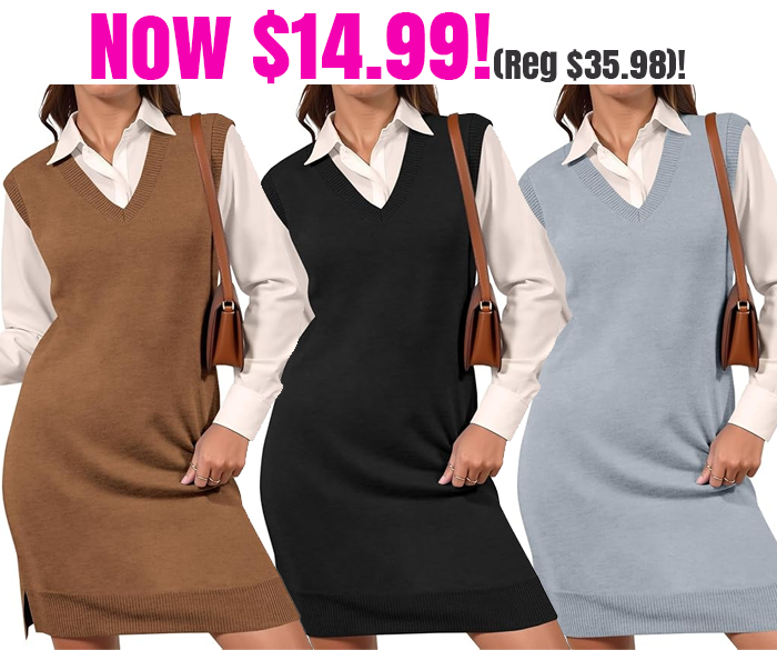 Wenrine Womens Sleeveless Sweater Vest Dress for $14.99 (Reg $35.98)!
