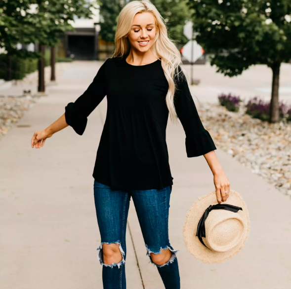 This Weslie Top is a beautiful basic that is a must this season! Featuring 3/4 flutter sleeves, a flattering peplum fit, and 8 gorgeous colors, you can’t go wrong.