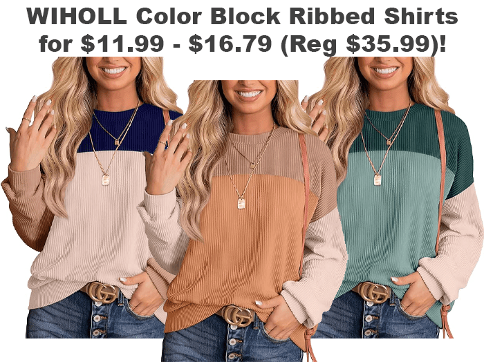 WIHOLL Color Block Ribbed Shirts for $19.99 – $27.99 (Reg $35.99)!