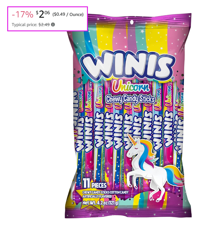 Winis Unicorn Chewy Candy Swirl, 4.3 Oz Bag – 11 Pieces for $2.29 (Reg $2.49)