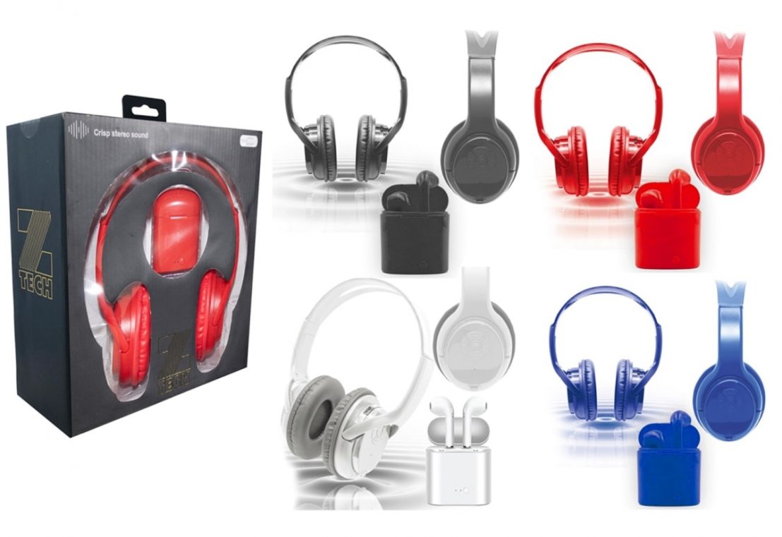 These headphone sets include both over-hear headphones and earbuds with a case! Choose from 4 colors.