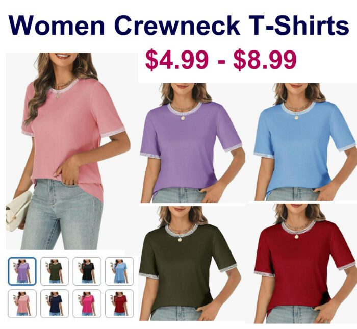 Women Crewneck Short Sleeve T-Shirts $9.98-$17.99