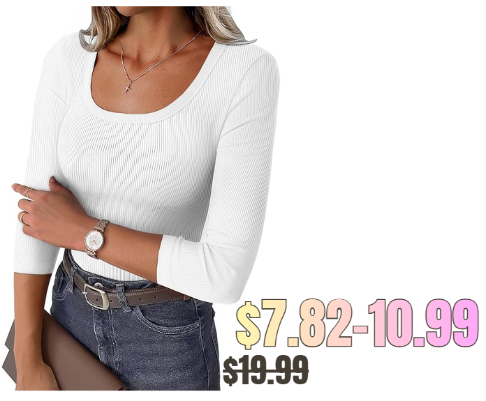 Womens 3/4 Sleeve Ribbed Shirt for $19.99