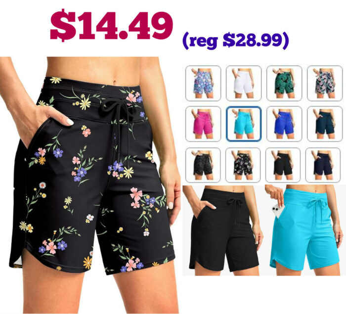 G Gradual Women’s 7″ High Waisted Swim Board Shorts $28.99