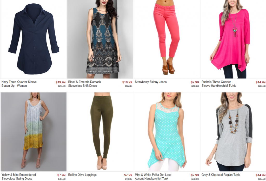 Zulily has a TON of women’s clothing starting at only $7.99! They are up to 80% off. I’m seeing beautiful dresses, tops, leggings, pants, shorts, and MORE!