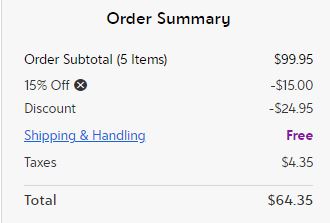 Otherwise, shipping starts at $6.99. Plus, once you place an order, you’ll get FREE SHIPPING on any other order you place for the rest of the day! Find out more about how this works and any exceptions to their policy HERE. Some heavy/bulk items may have an additional shipping charge.