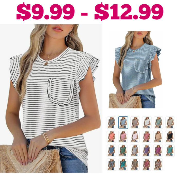 Women’s Ruffle Short Sleeve Top with Pocket $9.99 – $12.99