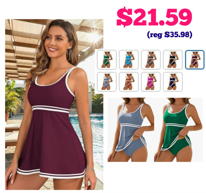 Women’s Tankini Color Block 2-Piece Swimdress $21.59 (reg $35.98)