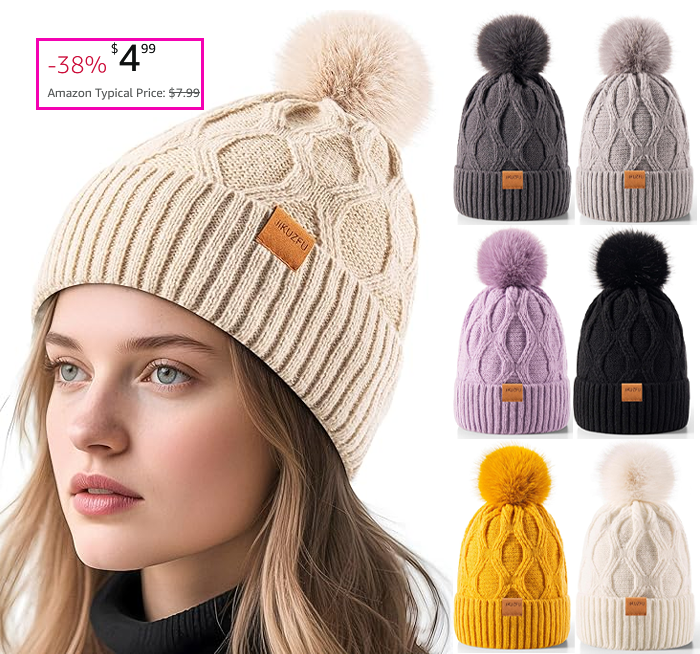 Womens Winter Beanie Hat with Pom Pom for $4.99 (Reg $7.99)!