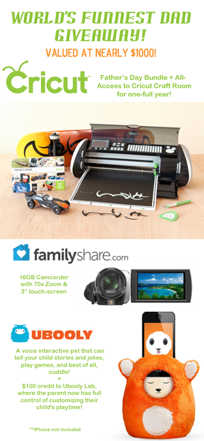 I’ve mentioned before that my hubby is a “man crafter.” What can I say, I love him dearly for it. (Right here he would also like me to mention that he has a shop full of power tools and just bought a big truck — so he is also all man — Ha!) So in honor of my hubby we teamed up with Cricut, Ubooly, and FamilyShare.com to bring you an Amazing prize package!
