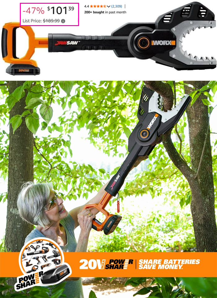Worx 20V JawSaw Cordless Chainsaw Power Share – WG320 (Battery & Charger Included) for $101.39 (Reg $189.99)!