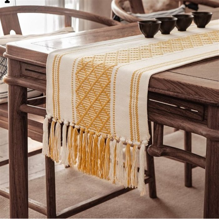 Create a trendy tablescape with these gorgeous woven farmhouse table runners. Crafted with 100% cotton, the long table runner gives you softness and warmth with fun colors and tassels.