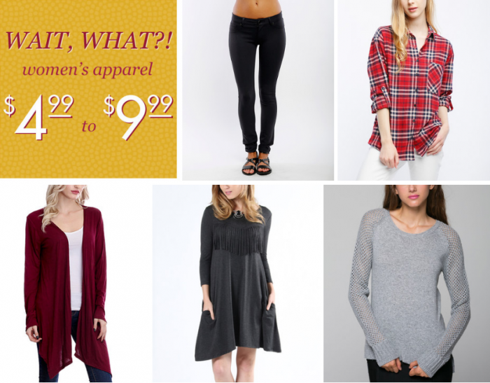 HOLY SMOKES you guys! This sale on juniors & women’s apparel is AWESOME! There’s so much available at KILLER prices! Everything is $4.99 to $9.99! There are cute pants, fun tops, pretty tunics, comfy sweaters, all sorts of accessories! Shop Juniors, Regular, or Plus Sizes!